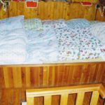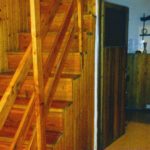 chodba; staršia kúpeľňa s WC, sprchou a boilerom; pivnica; izba s barom, krbom (teplovzdušné kúrenie), rozkladacím gaučom.