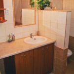 kúpeľňa s WC, rohovou vaňou, bidetom; spoločenská miestnosť a zároveň jedáleň; kuchyňa s pohovkou a kachlami; veľký balkón s možnosťou posedenia.